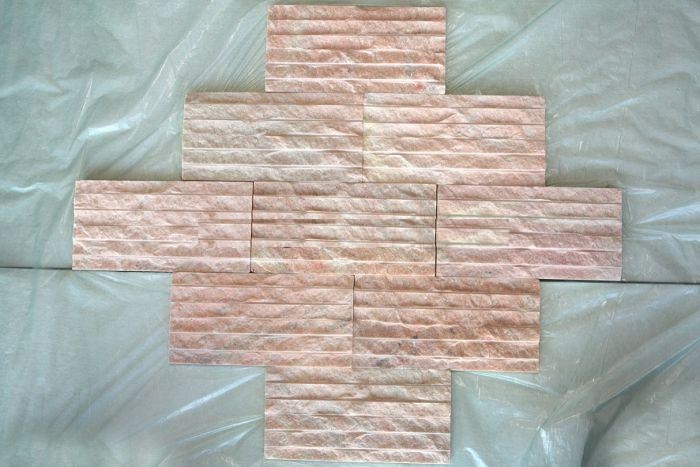 Đá chẻ sóng hồng tự nhiên ốp trang trí sân cổng tường rào DC-003P