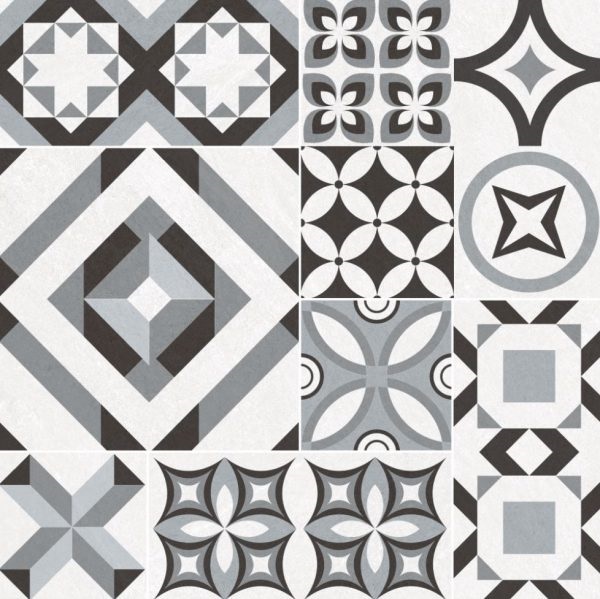 Gạch bông rối 60x60cm trang tri Royal màu ghi xanh 6702