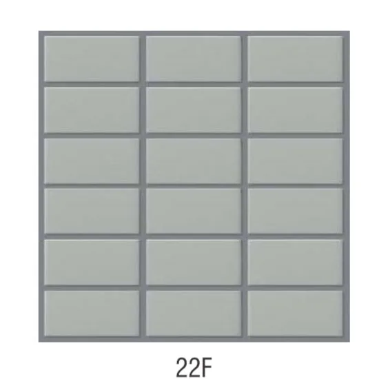 Mã sản phẩm: 22F Loại gạch: Gạch vỉ, gạch ốp tường Kích thước vỉ : 300×300 mm Độ dày: 7 mm Số lượng vỉ trên m2: 11.5 vỉ / m2 Số lượng vỉ trên thùng: 22 vỉ / thùng