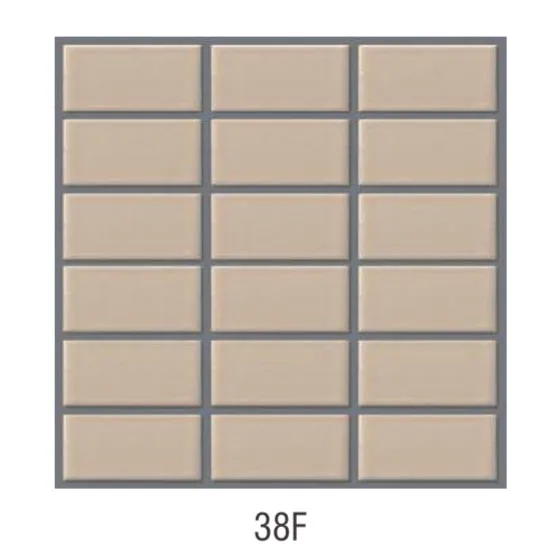 Mã sản phẩm: 38F Loại gạch: Gạch vỉ, gạch ốp tường Kích thước vỉ : 300×300 mm Độ dày: 7 mm Số lượng vỉ trên m2: 11.5 vỉ / m2 Số lượng vỉ trên thùng: 22 vỉ / thùng