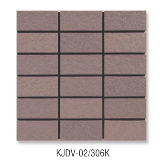 Mã sản phẩm: KJDV-02/306K Loại gạch: Gạch vỉ, gạch ốp tường Kích thước vỉ : 300×300 mm Độ dày: 7 mm Số lượng vỉ trên m2: 11.5 vỉ / m2 Số lượng vỉ trên thùng: 22 vỉ / thùng