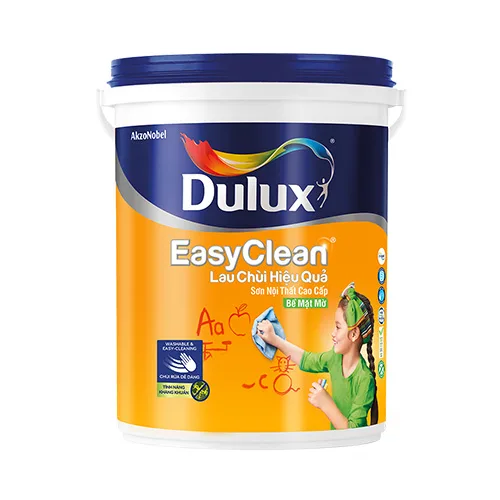 Dulux EasyClean Lau Chùi Vượt Bậc – Bề mặt mờ là sơn nội thất cao cấp có khả năng lau chùi tối ưu.